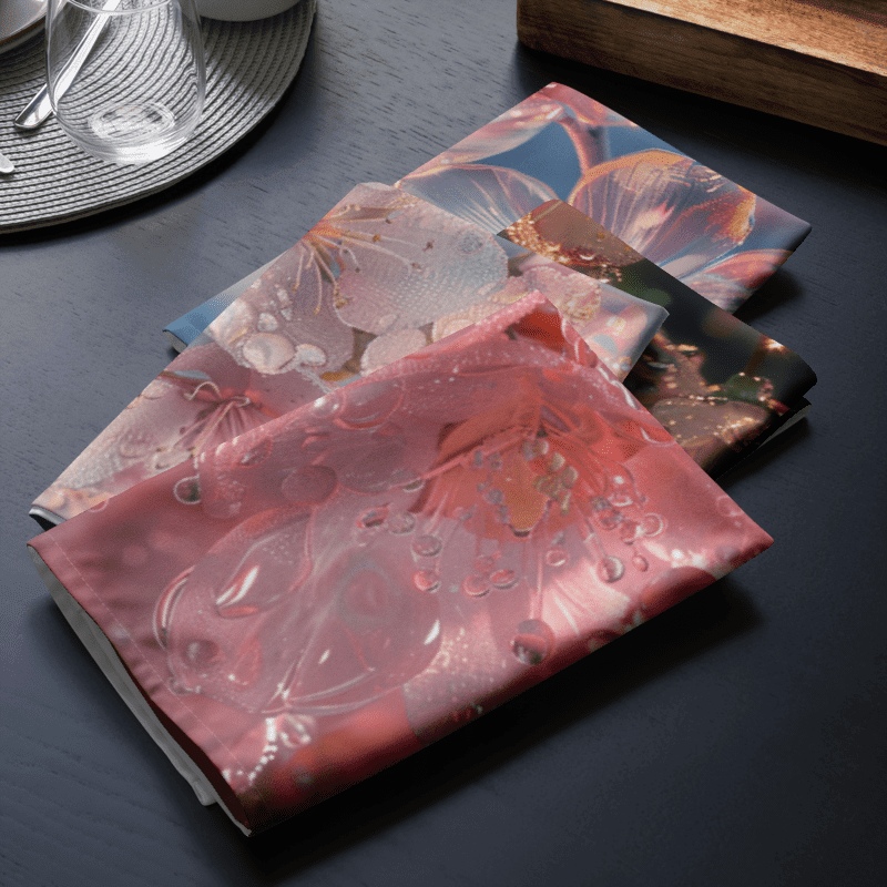 Revamp your dining experience with our custom cloth napkin set. Every pack comes with 4 soft, lightweight, and pliable napkins, each with a unique design for that personal touch. Great for special dinners or everyday use, these napkins add a dash of design and comfort to any mealtime.